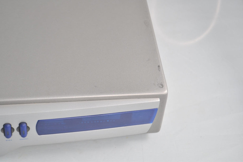 Cosmetically, the unit is in good condition with one notable blemish: there is a visible rub mark on the top right-hand side, near the front. Detailed photos have been included to highlight this area and other tiny marks. This is a cosmetic flaw only and does not affect the amplifier's performance.