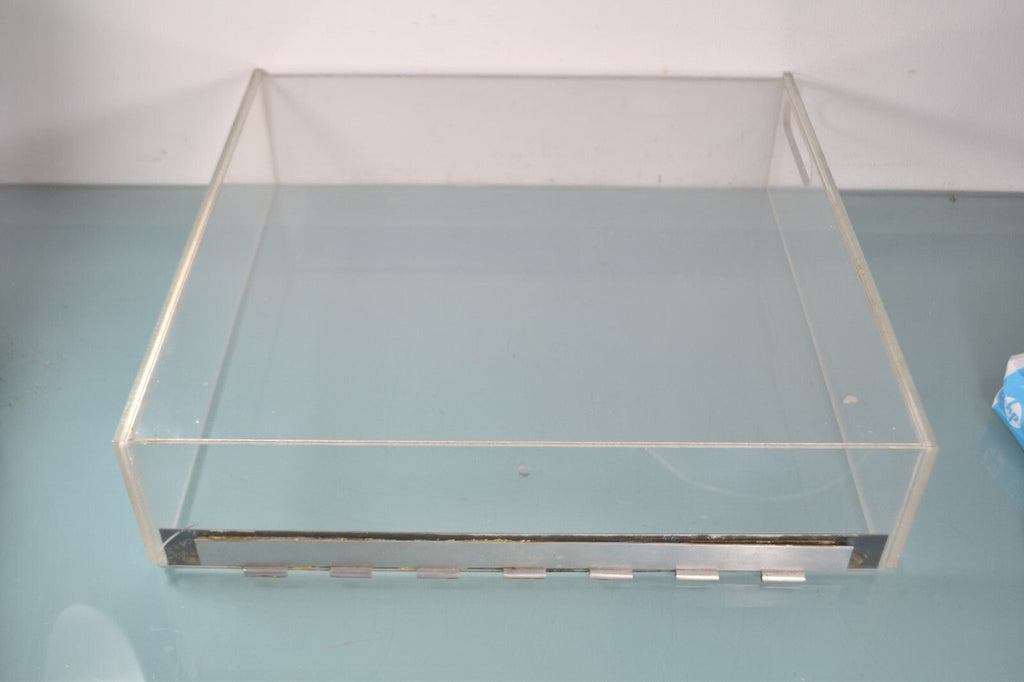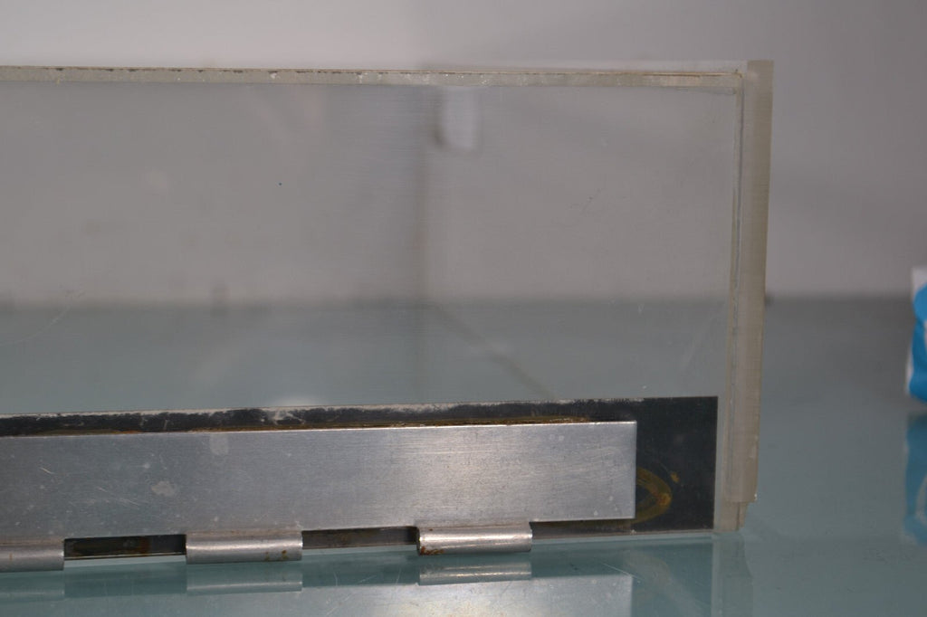 Transcriptor/Michell hydraulic reference turntable original lid. Solid original item. Some marks, see pictures. Hinge loops are present on the back but the panel would benefit from regluing. This lid would tidy up nicely for someone looking for an original lid.