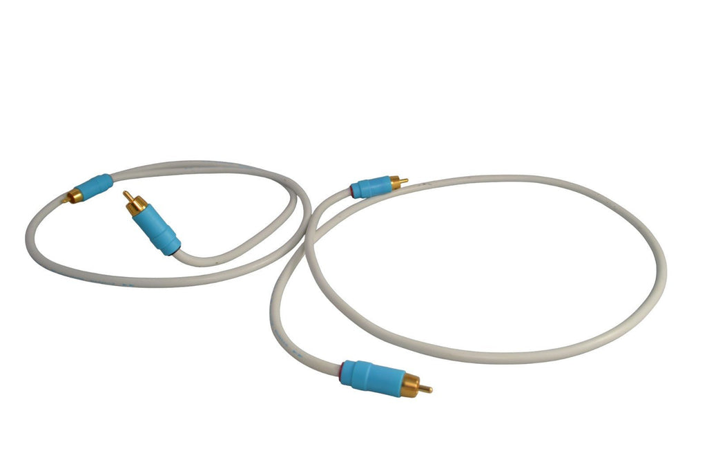 High-quality audio cables designed for universal compatibility. These white and blue cables are made of multi-strand fibre with gold-plated connectors, providing shielded protection for optimal sound quality. With a length of 1m, these Chord cables are perfect for connecting stereo audio devices and ensuring a reliable connection for your sound system. Made in the United Kingdom by the reputable brand Chord, these audio interconnect cables are a great addition to any home audio setup.