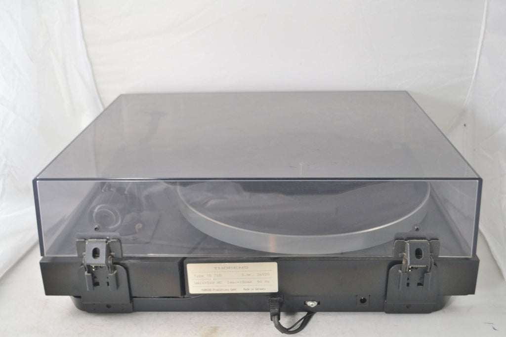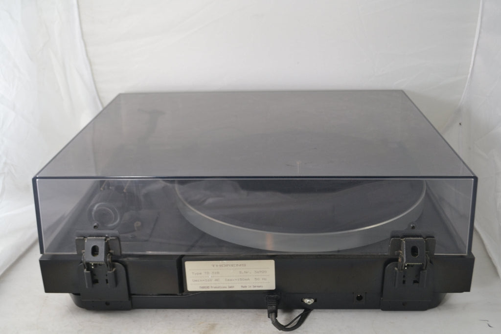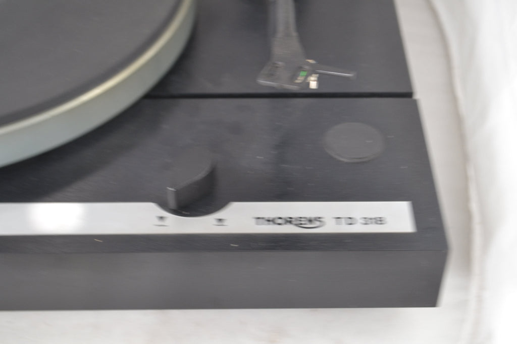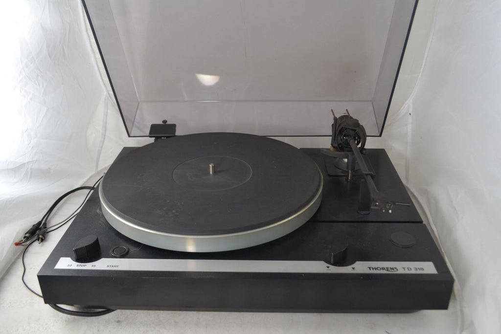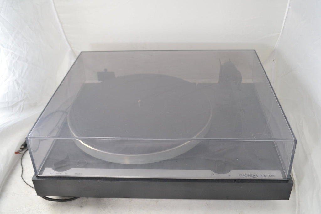 Thorens TD318 turntable in good working order with tonearm. Good cosmetic condition, minor marks to the lid and one small mark on the right hand side of the plinth which has been touched in. No cartridge supplied.